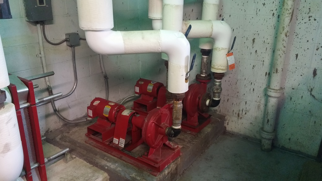 This array of ECM pumps I designed allowed us to slow down the flow to match the needs of the condensing boilers